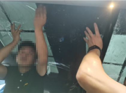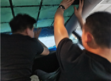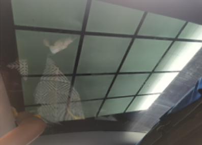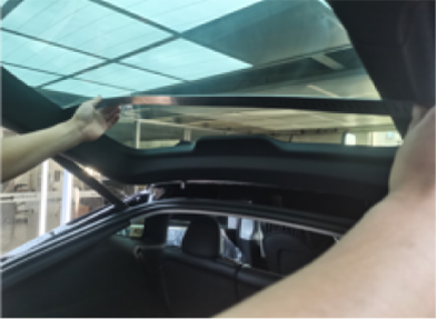开始天窗膜作业,由二名技术配合完成