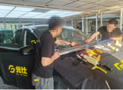 侧窗膜作业技师须配合前后窗膜技师必要的辅助工作