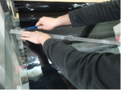 3.按施工车辆的前挡、后档、侧挡的尺寸裁膜