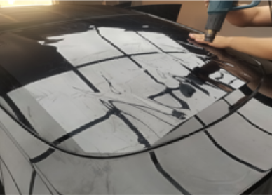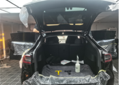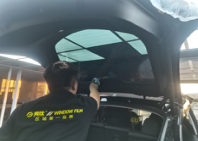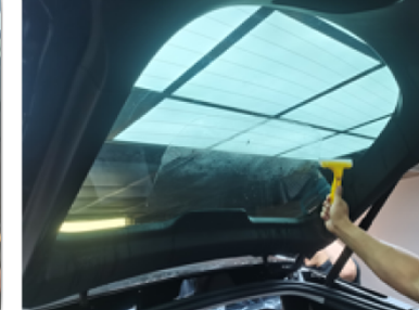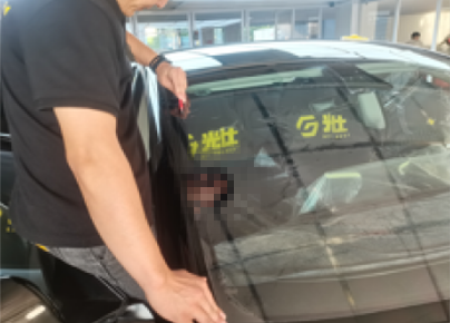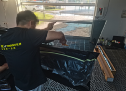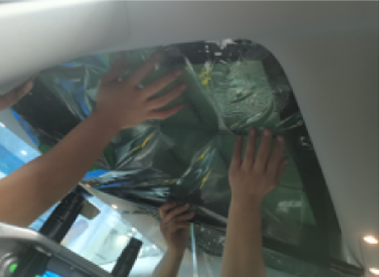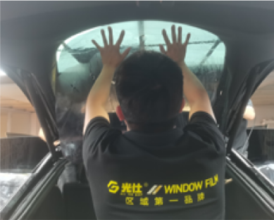 前窗膜安装完成转移工序进行后窗膜安装,