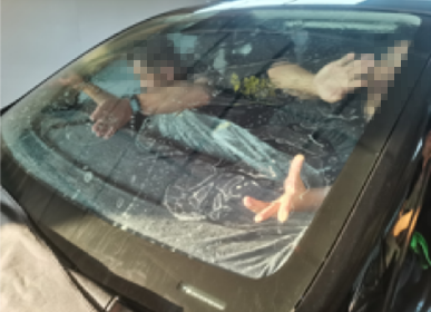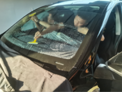 5.清洁车辆的玻璃内侧,用清洁剂、软布清洁玻璃及橡皮压条和车窗边框