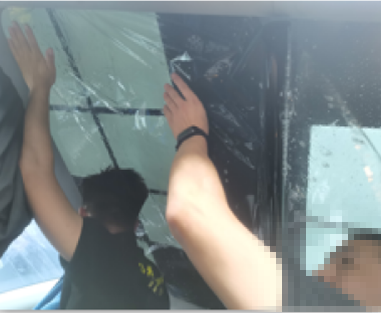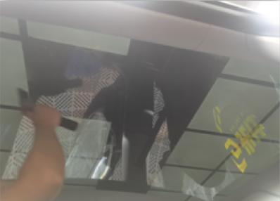 8.玻璃内侧清洁后将膜装贴到车窗玻璃上