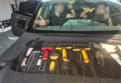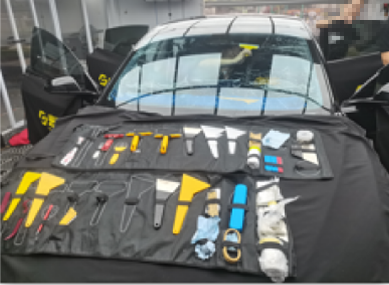 13.收拾好各位工具保护物料,恢复车内物品放置,清洁车辆,挂施工完毕牌,并在仪表台放置施工验收单