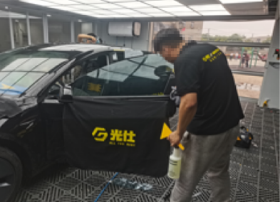 4.将毛巾或保护膜铺在电子仪器上,避免喷水的影响。严格履行施工前的保护流程,用12件套对施工车辆进行贴切呵护